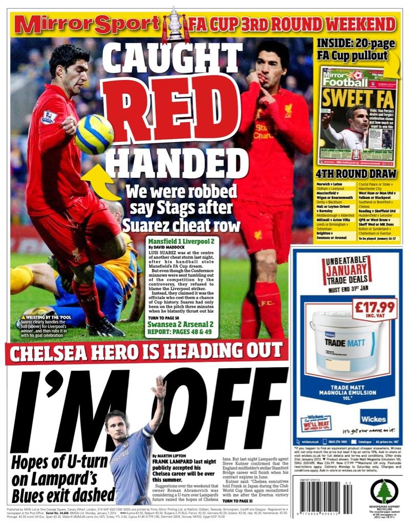 Daily Mirror - "I'm off (Hopes of U-turn on Lampard's Blues exit dashed)