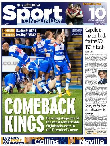 Mail on Sunday Sport - "Comeback kings" (Reading)