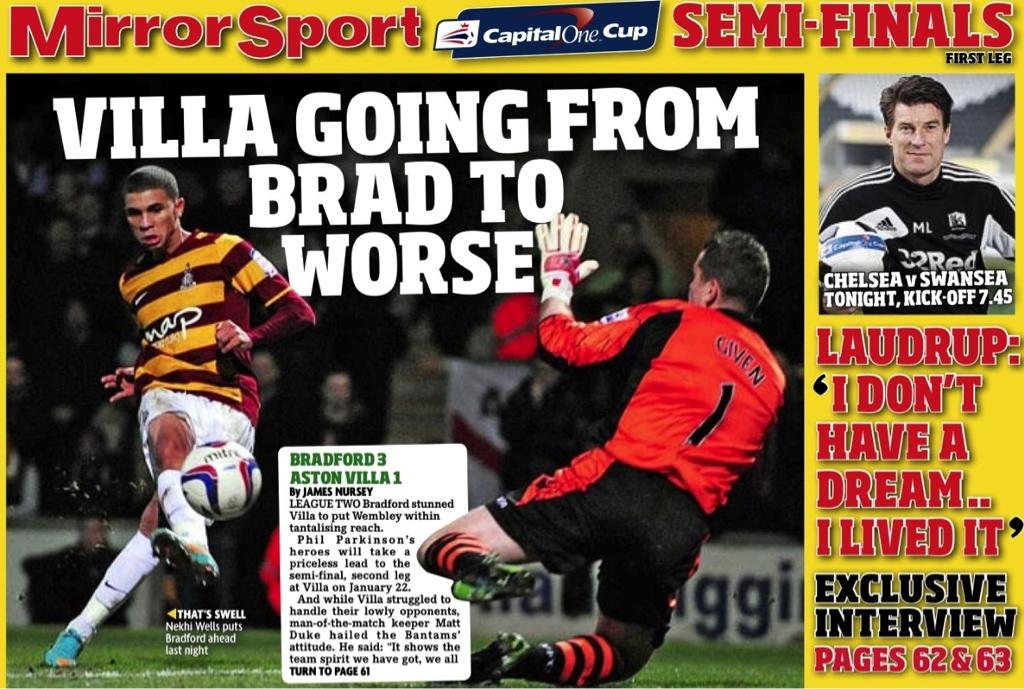 Mirror Sport: Villa go from Brad to worse