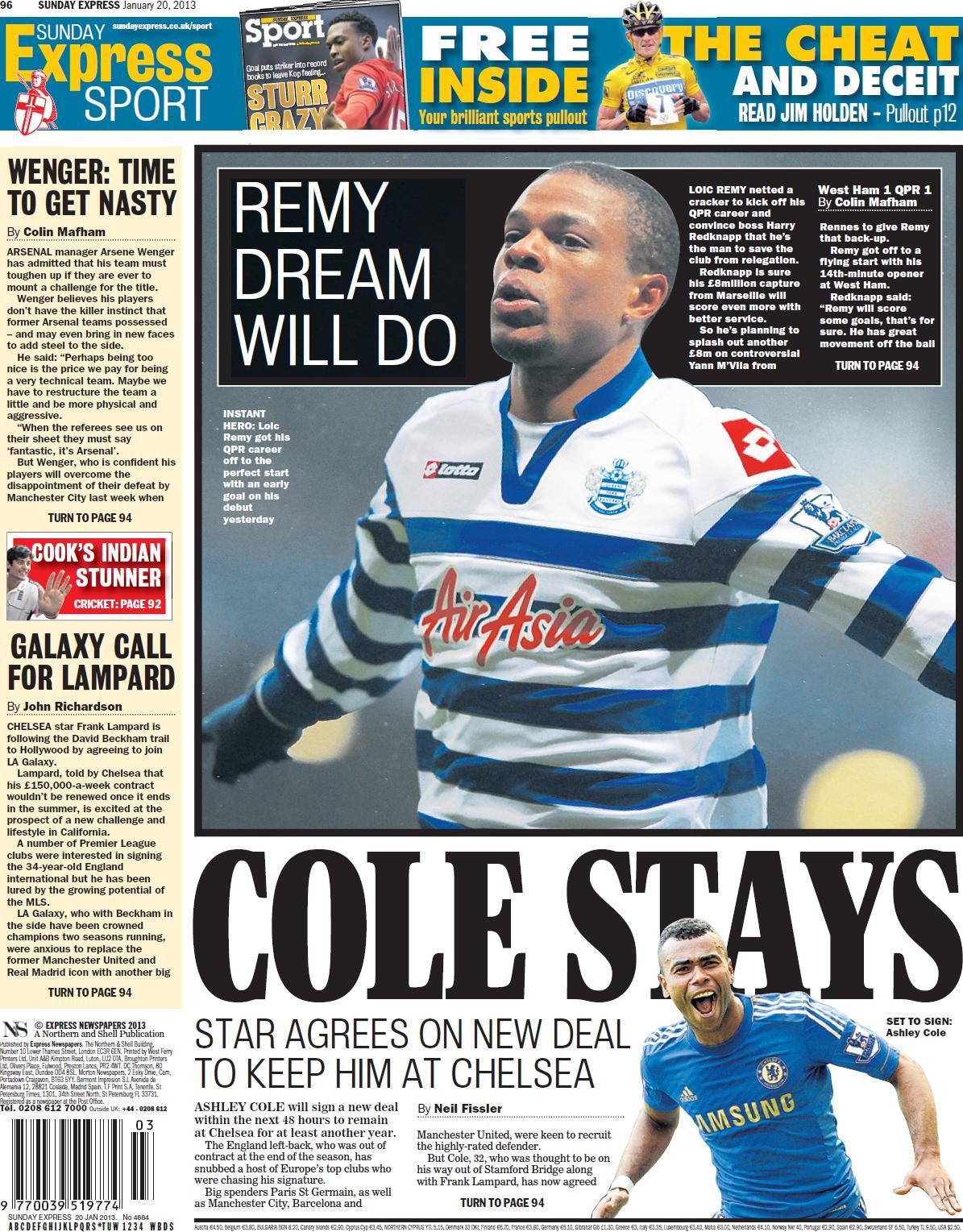 Sunday Express - "Cole stays"