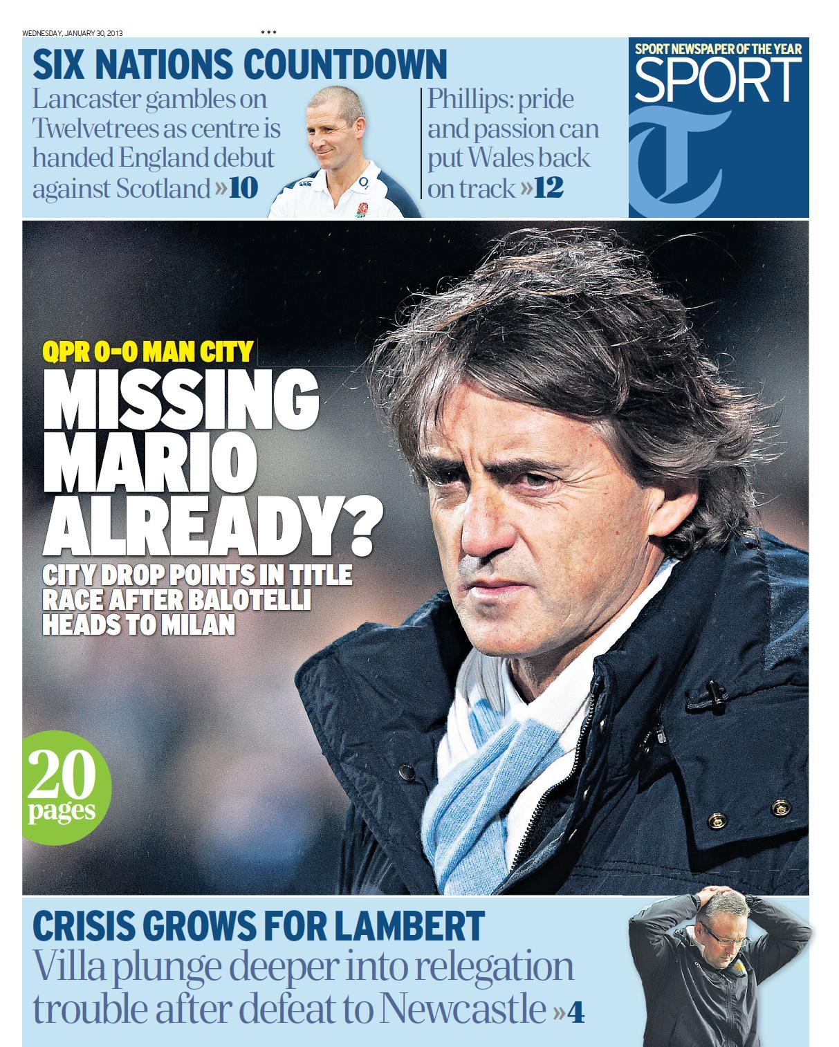 Telegraph Sport - "Missing Mario already?"