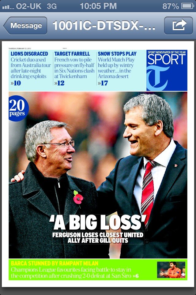 DTel Sport: a big loss - Gill quits Man U