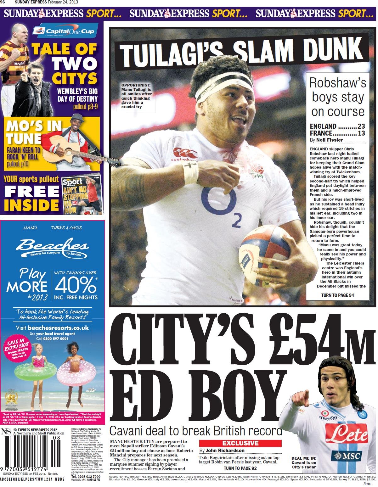 Sunday Express: City dá £54m por Cavani