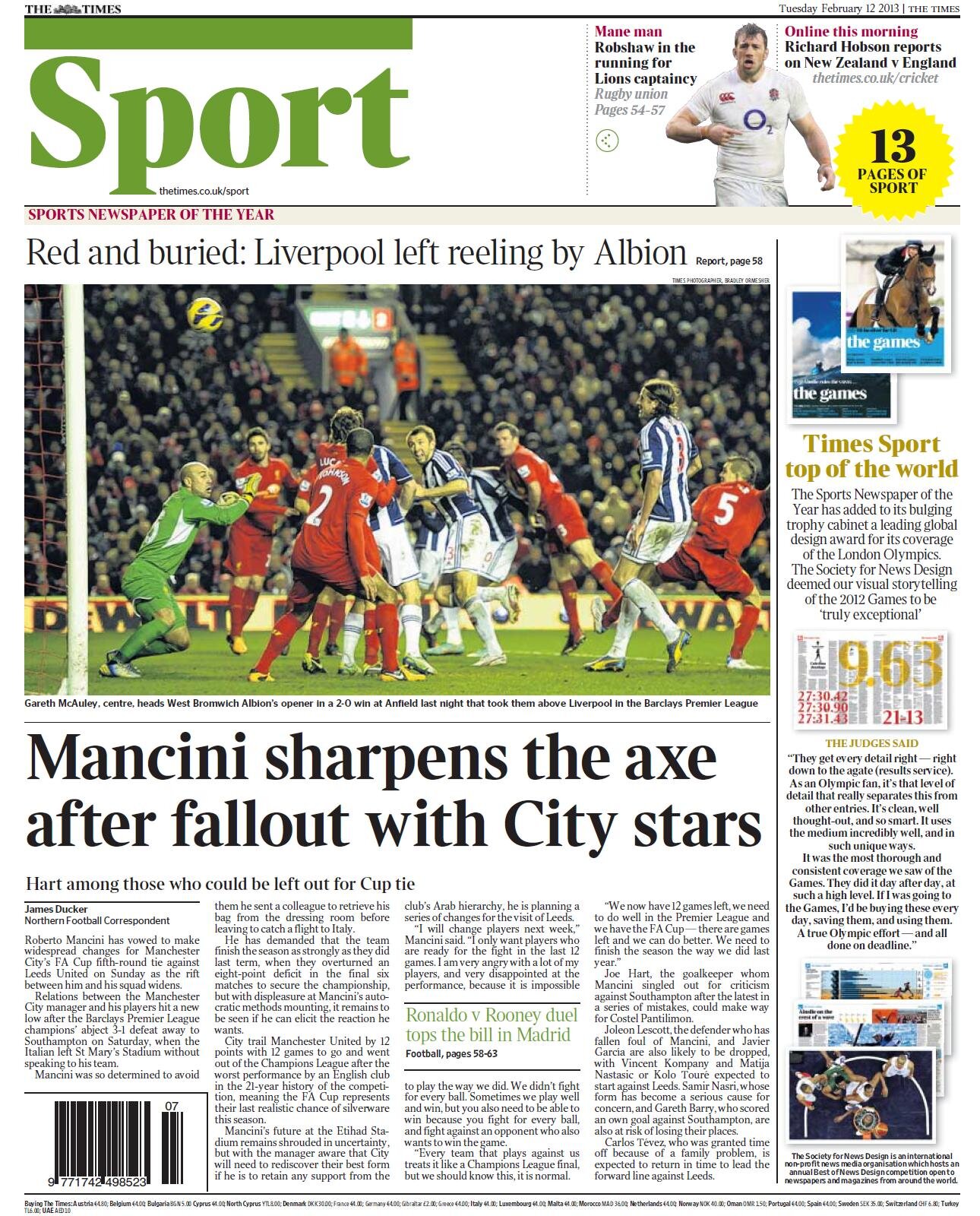 Times - "Mancini sharpens the axe after fallout with City stars"