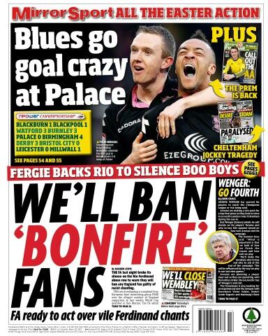 Daily Mirror - "We'll ban 'bonfire' fans"