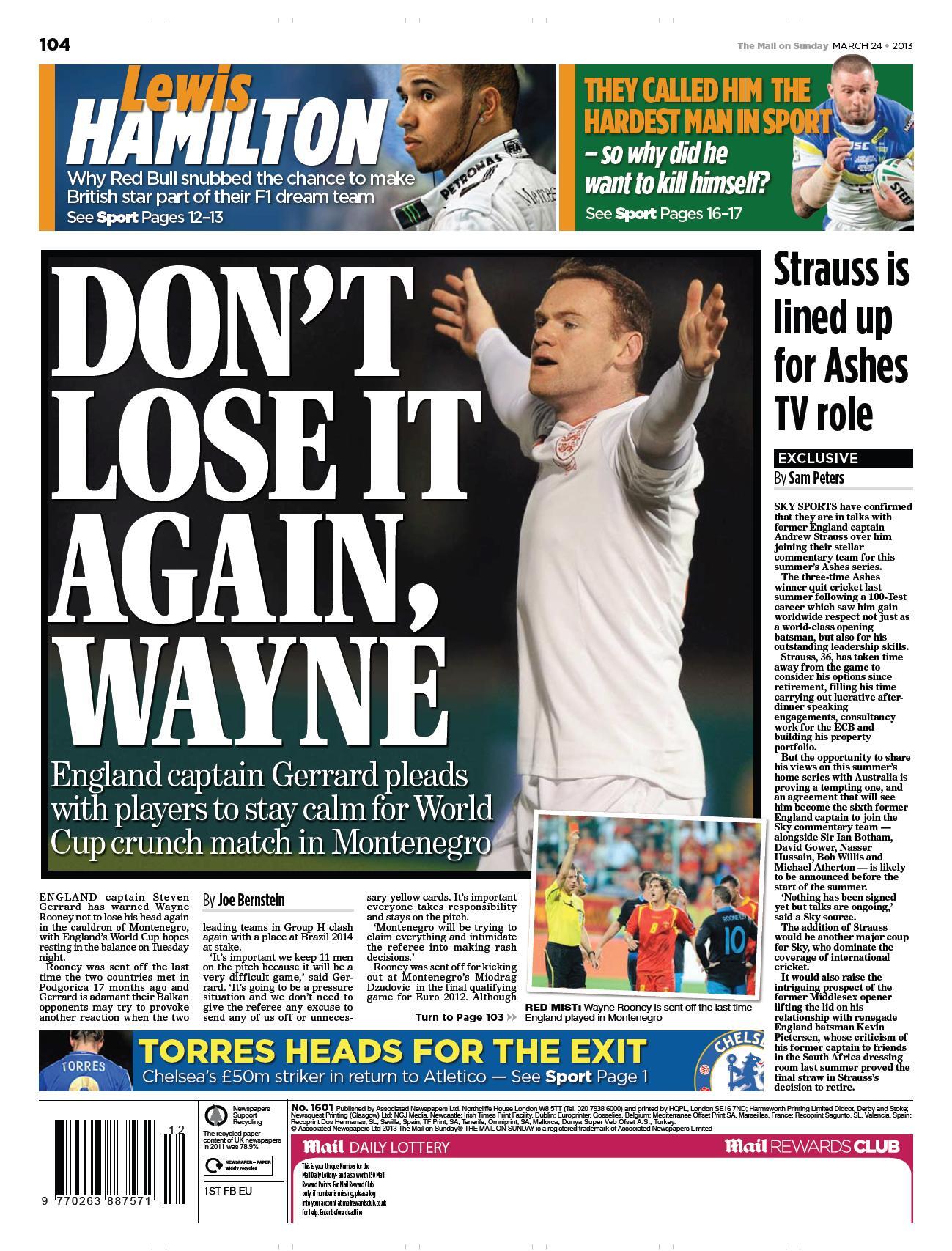 Mail on Sunday – “Don’t lost it again, Wayne”