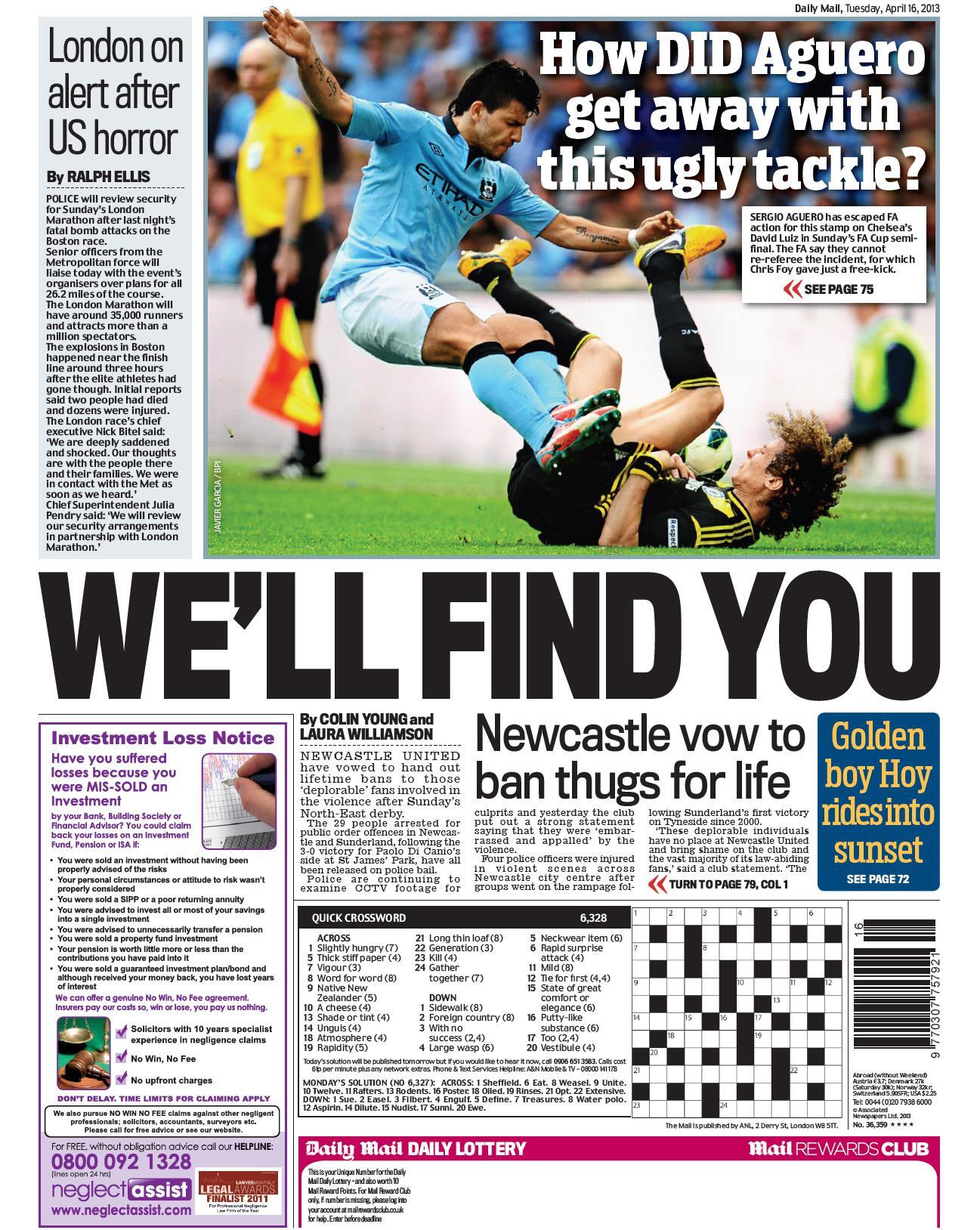 Daily Mail - "We'll find you" (Newcastle vow to ban thugs for life)