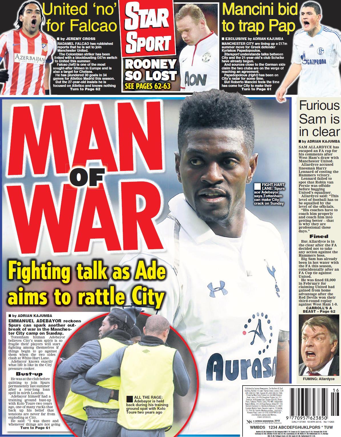 Daily Star - "Man of war. Fighting talk as Adebayor aims to rattle City"