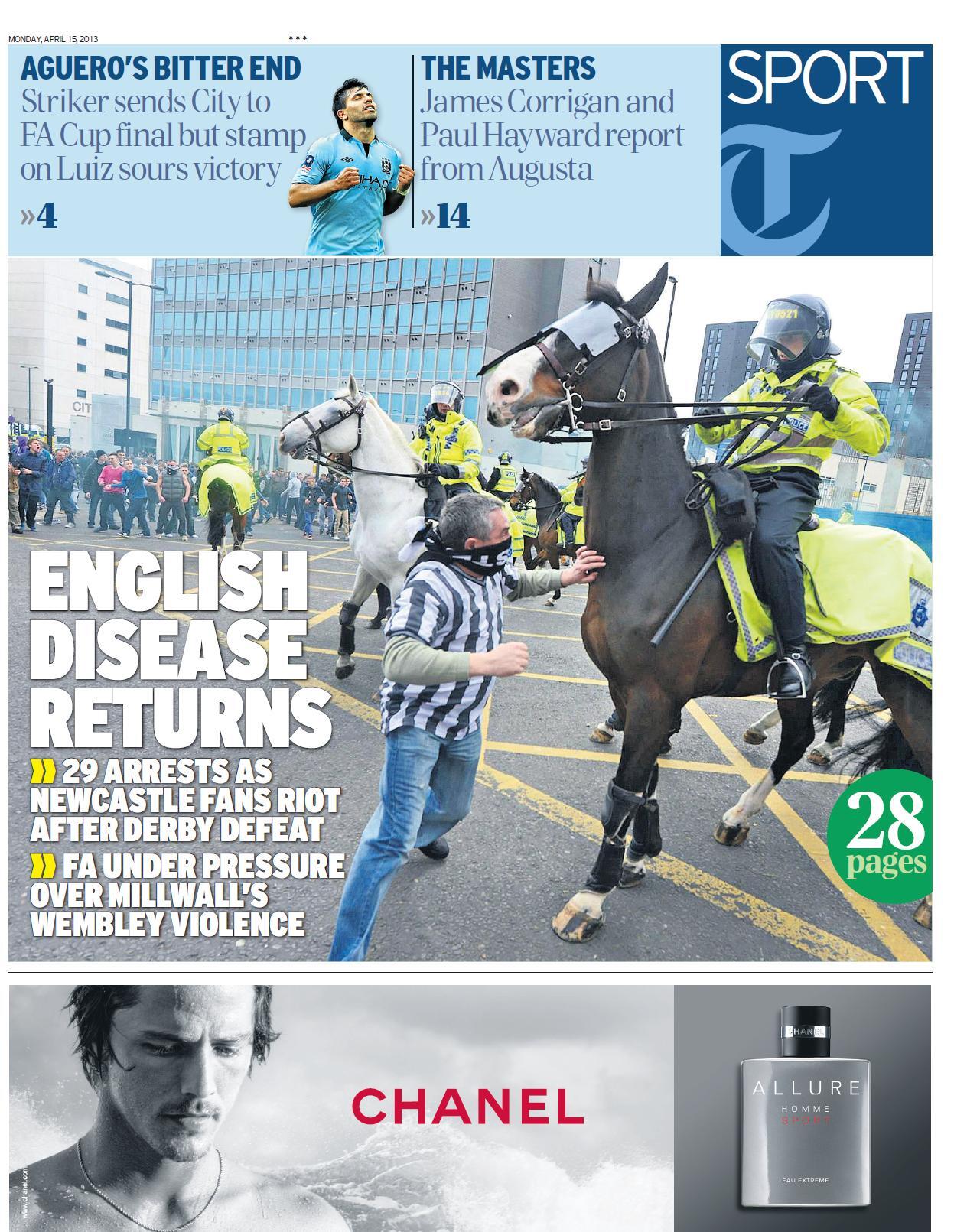 Daily Telegraph Sport - "English disease returns"