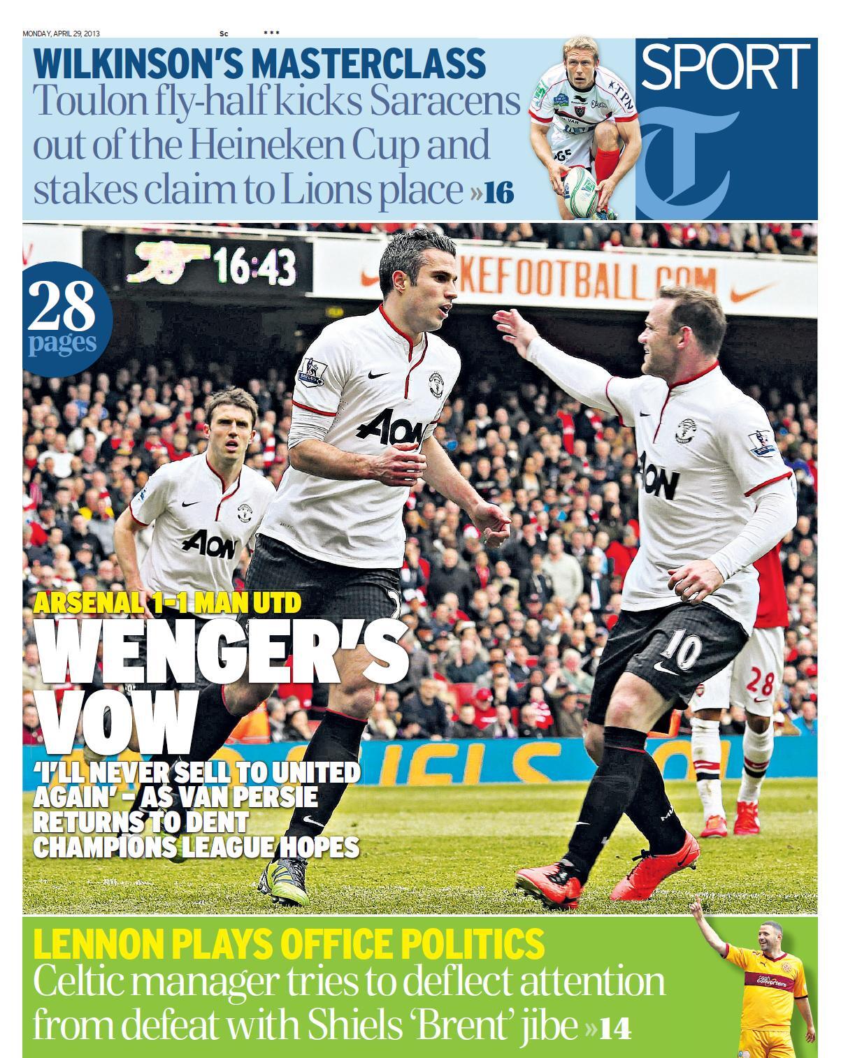 Daily Telegraph - "Wenger's vow"
