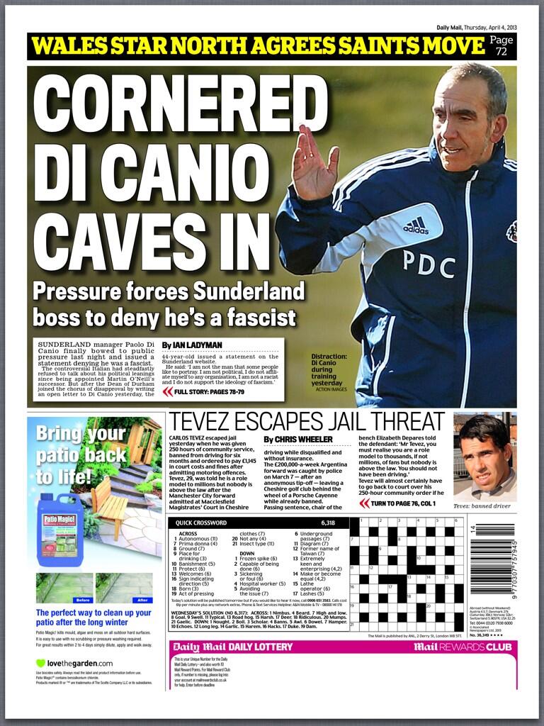 Mail Sport: Cornered Di Canio caves in
