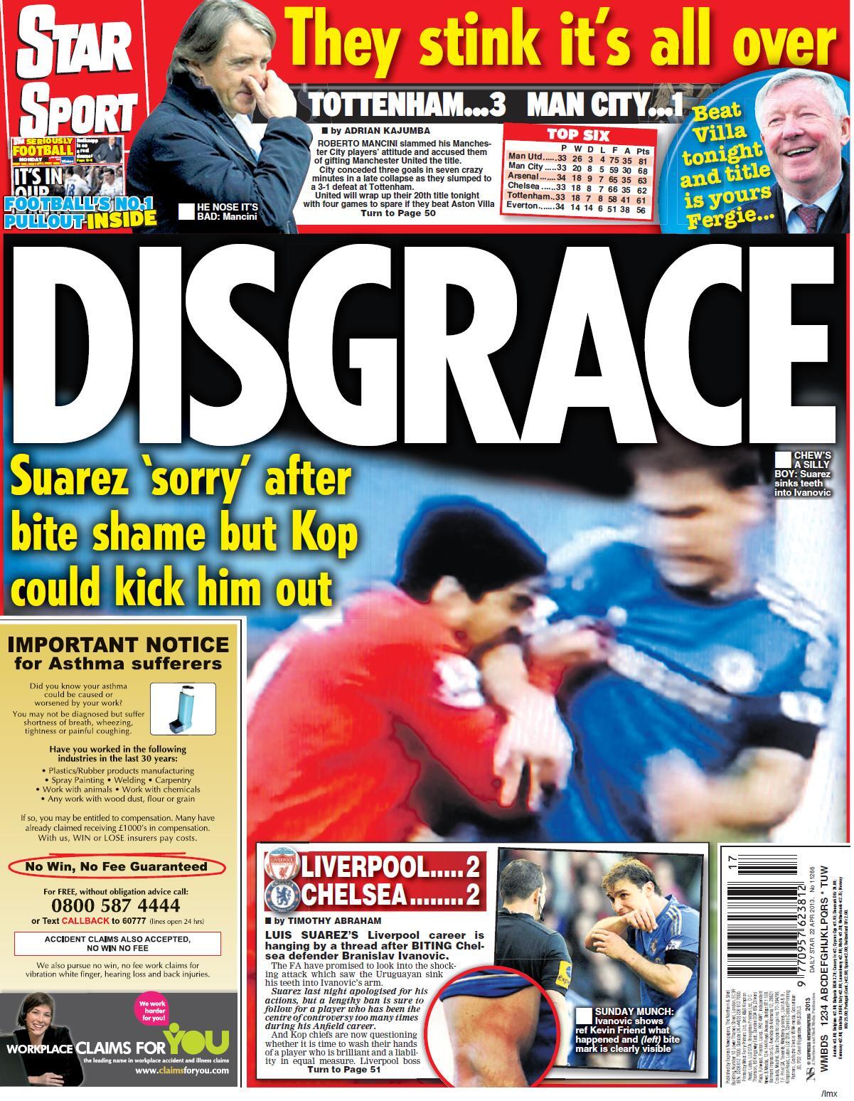 Star Sport - "Disgrace. Suarez 'sorry' after bite shame but Kop could kick him out"