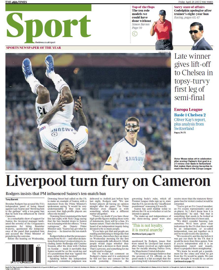 Times - "Liverpool turn fury on Cameron"