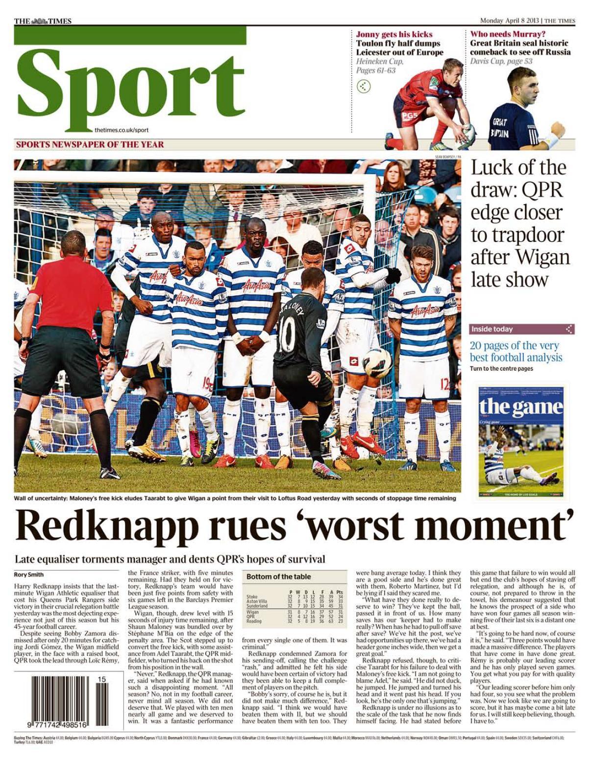 Times: "Redknapp rues 'worst moment'"