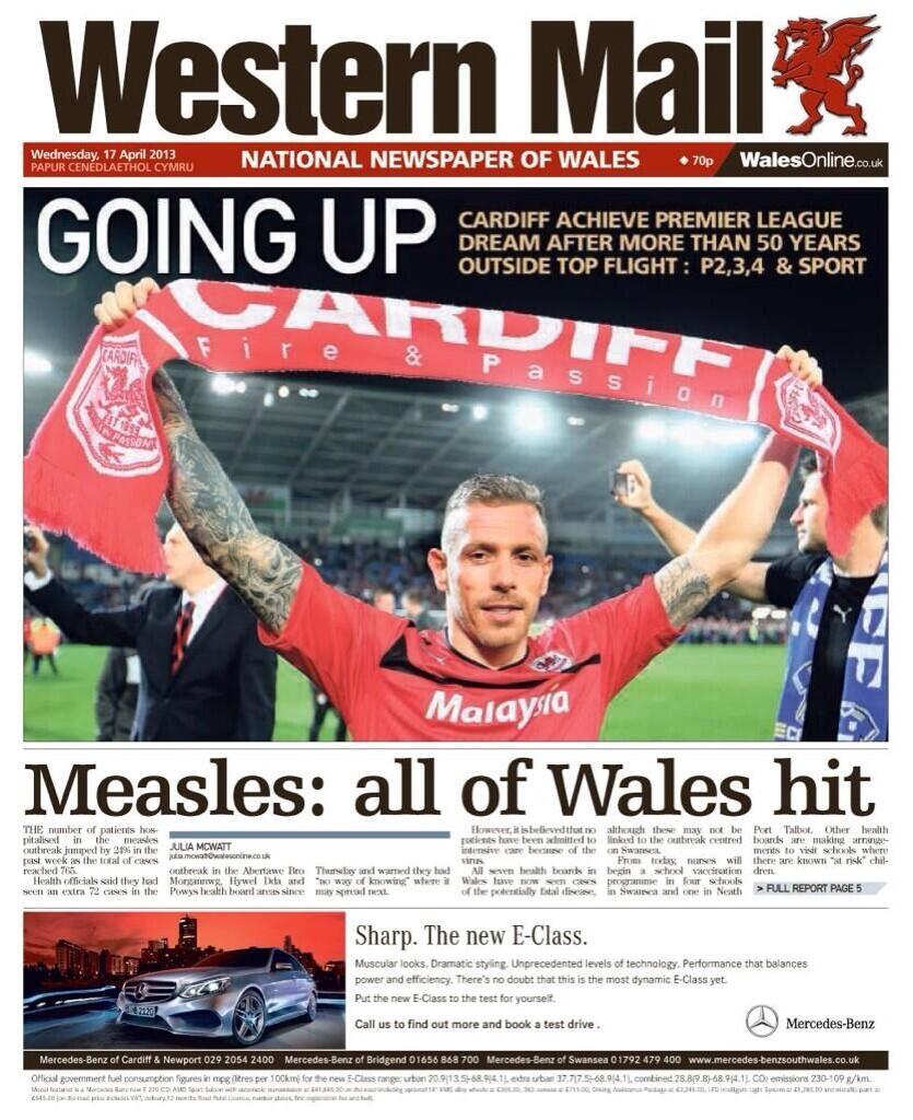 Western Mail: Going up. Cardiff achieve Premier League dream after more than 50 years outside top flight