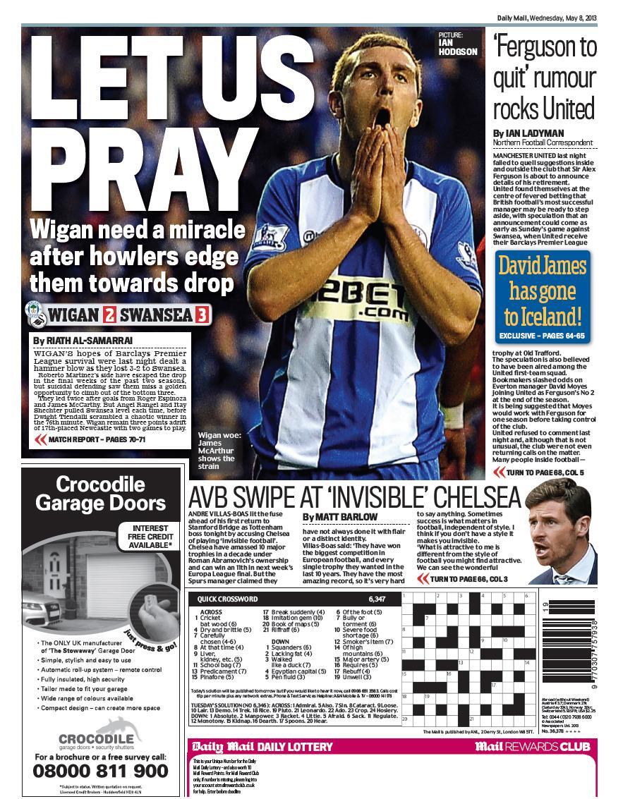 Daily Mail - "Let us pray" + "'Ferguson to quit' rumour rocks United"
