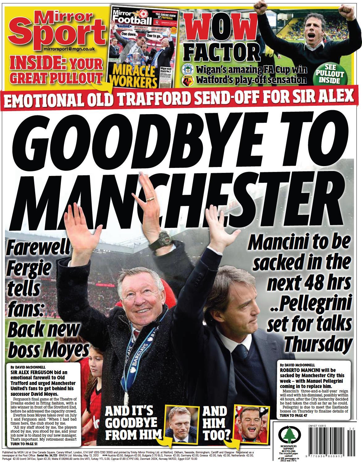 Daily Mirror - "Goodbye to Manchester (Ferguson & Mancini)"