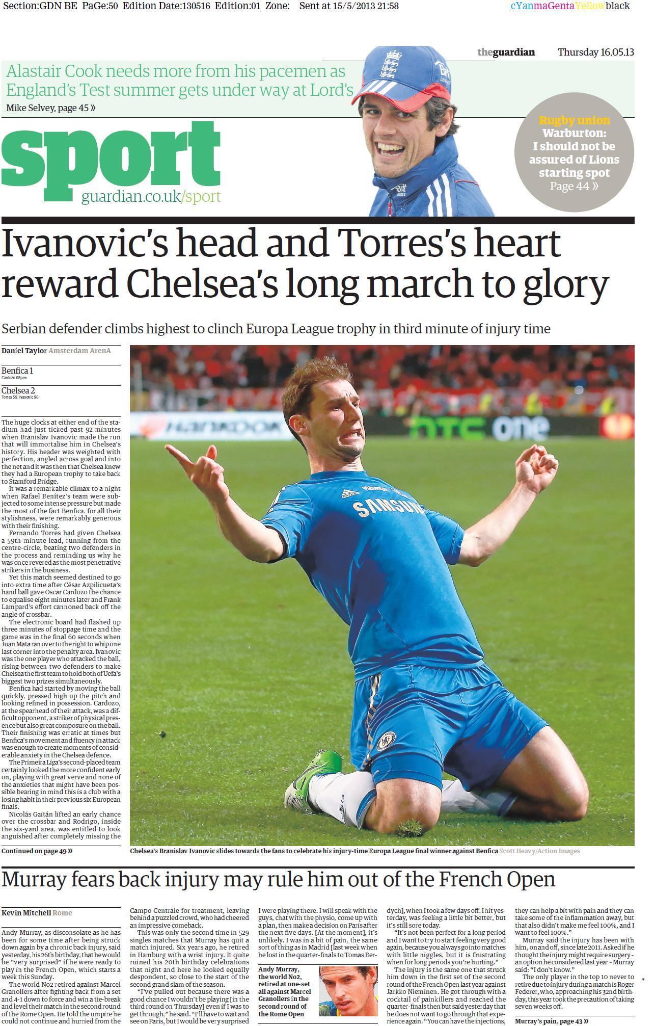 Guardian Sport - "Ivanovic’s head and Torres’s heart reward Chelsea’s long march to glory"