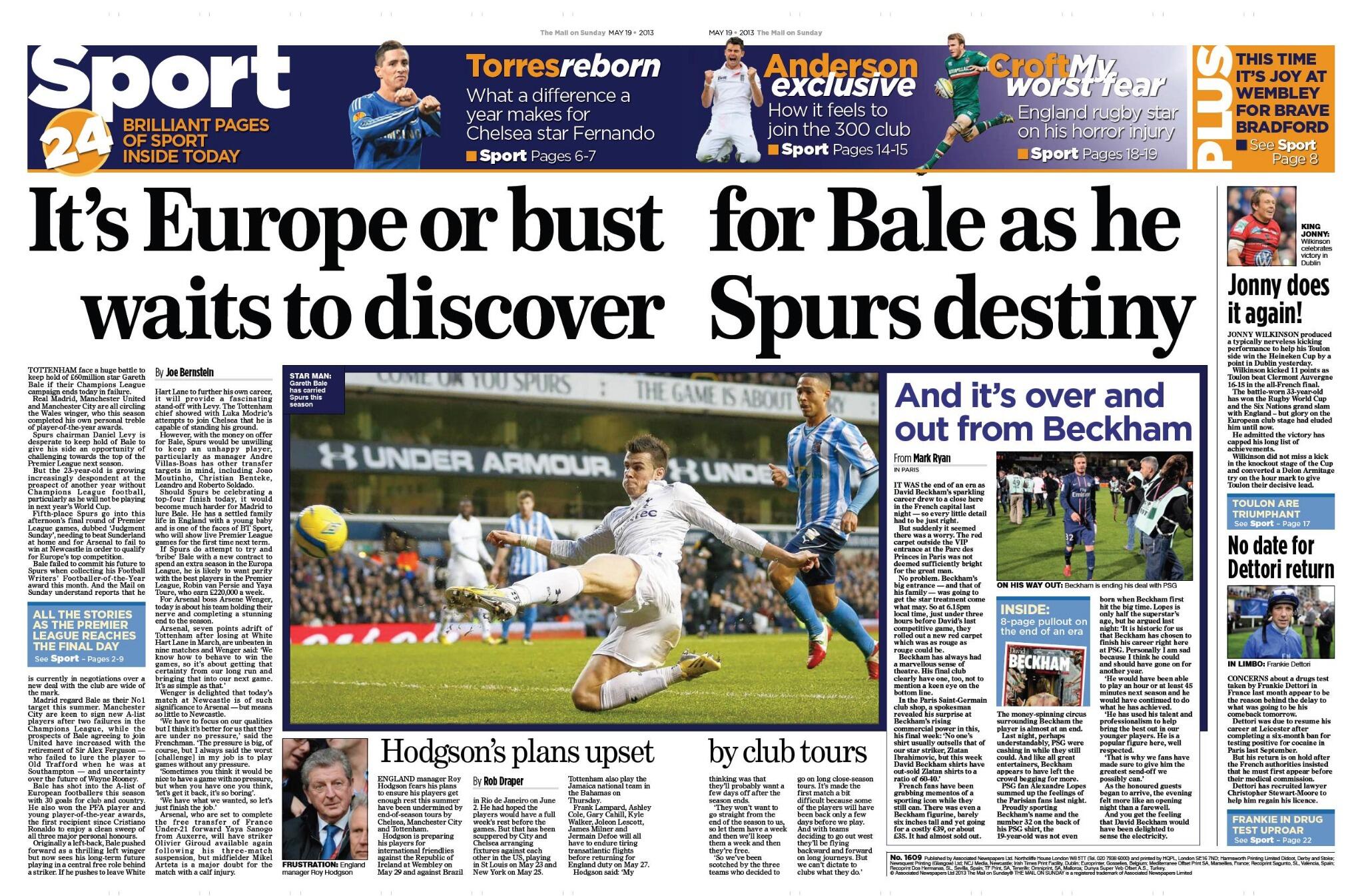Mail on Sunday – “It’s Europe or bust for Bale as he waits to discover Spurs destiny”