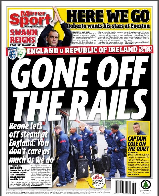 MIRROR SPORT: "Gone off the rails, Keane lets off steam at England: You don't care as much as we do"