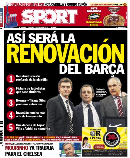 Sport: A renovação do Barça. Neymar e Thiago Silva os primeiros reforços, Villa e Abidal não ficam