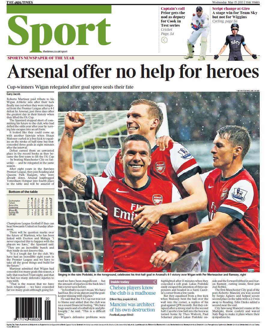 Times - "Arsenal offer no help for heroes"