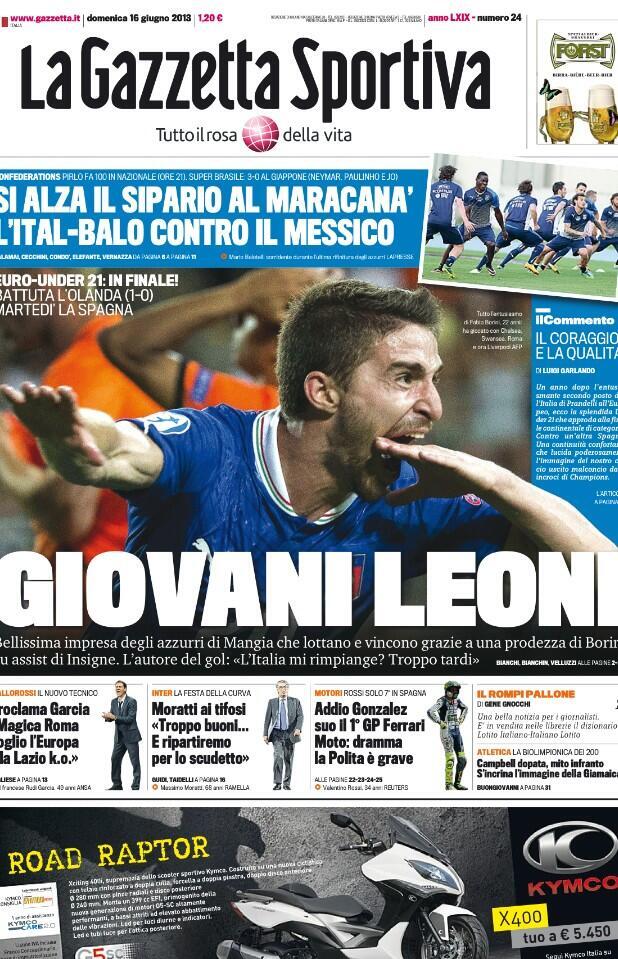 La Gazzetta: "Giovani Leone". Sub21 na final do Euro