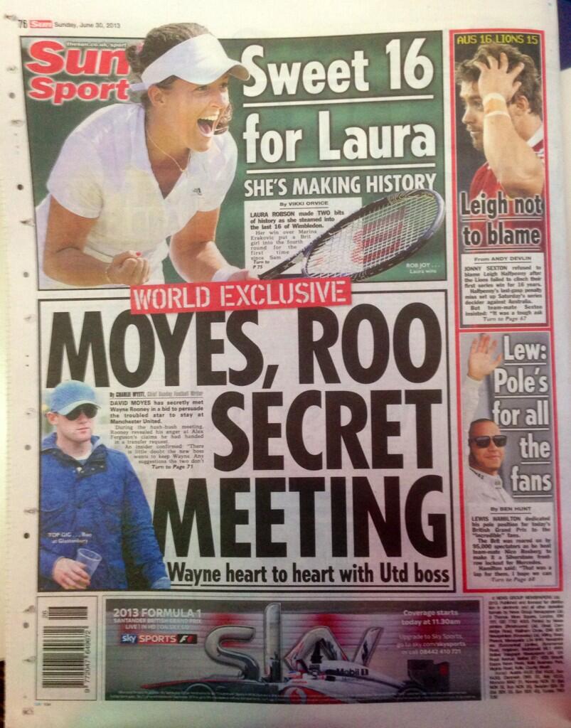 SUN SPORT: Moyes, Roo, secret meeting. Wayne heart to hearte with Utd boss