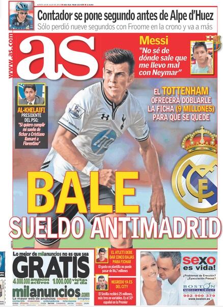 AS: Tottenham dá 9M€ a Bale para não sair para o Real