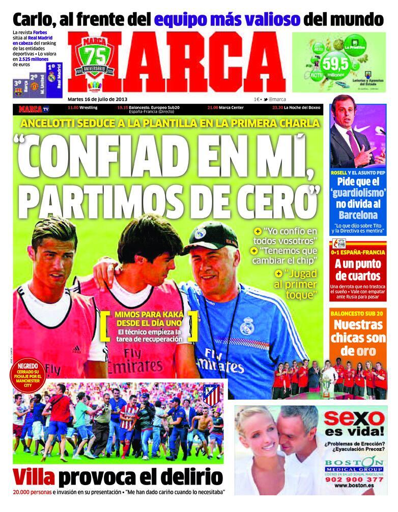 Marca: Ancelotti pede confiança. Villa provoca delírio