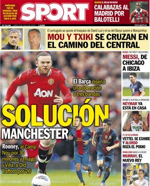 Sport: Barça dá Thiago e Villa por Rooney. Real quer Balotelli?