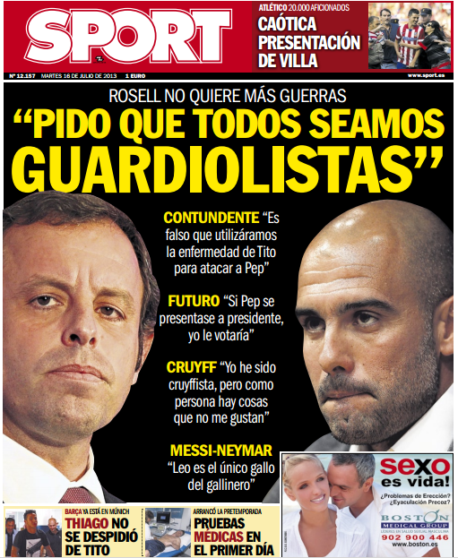 Sport: Rossel não quer guerras com Guardiola. Thiago não se despediu de Tito
