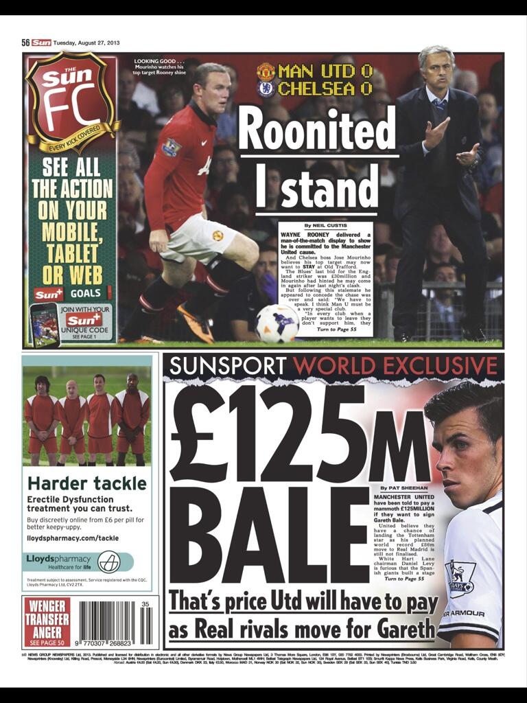 SUN SPORT: £125m Bale. That's price Utd will have to pay as Real rivals move for Gareth