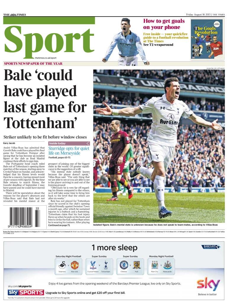 Times - "Bale ‘could have played last game for Tottenham’"