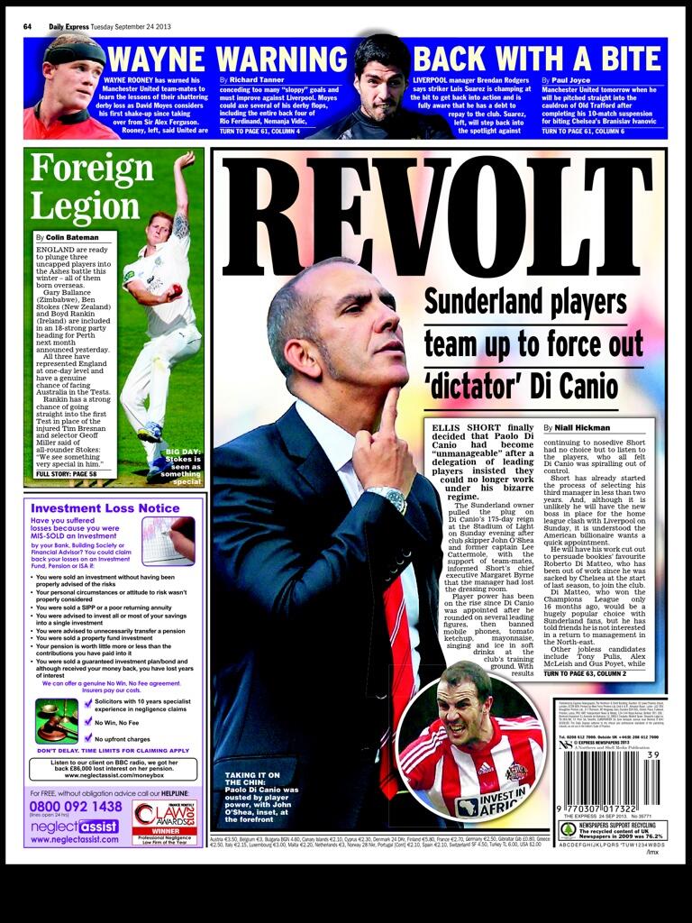 EXPRESS SPORT: Revolt. Sunderland players team up to force out 'dictator' Di Canio