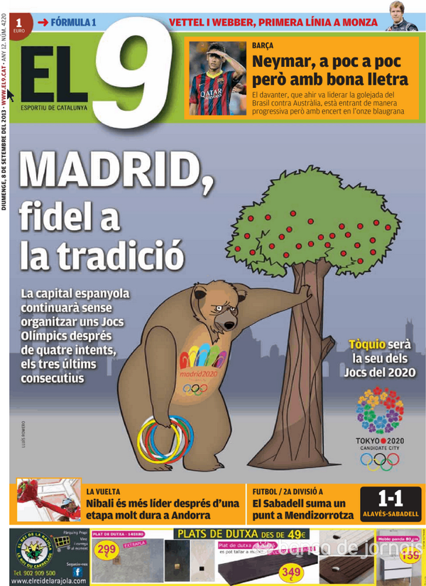 Imagem: Jornal (El9) da Catalunha 'goza' com a derrota de Madrid para os JO 2020