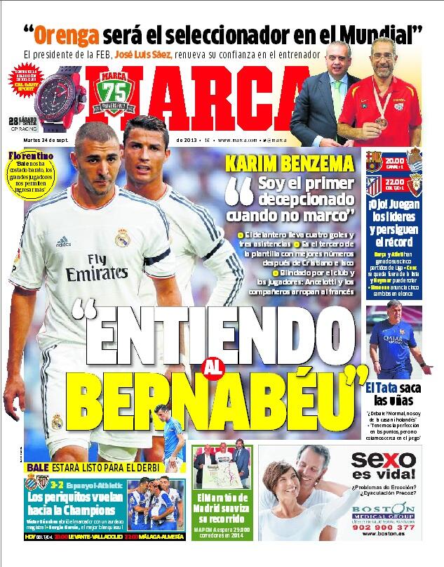 Marca: Benzema diz que entende os assobios no Bernabéu por falhar