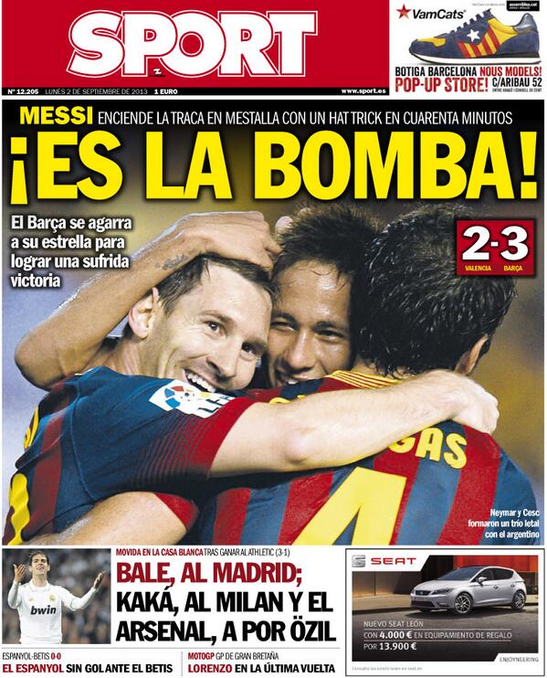 Sport: Messi 'es la bomba'. Hattrick do argentino dá vitória ao Barça