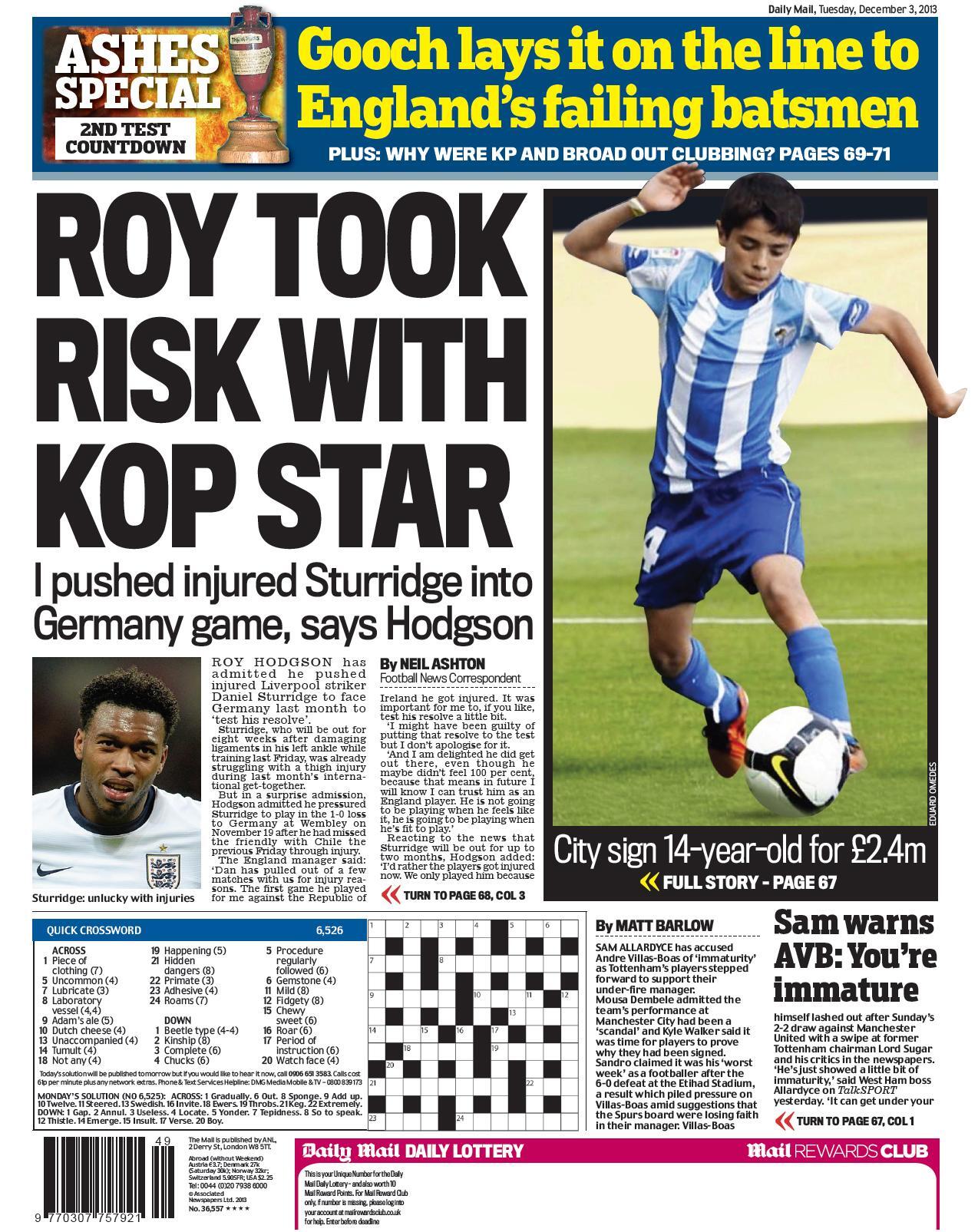 Daily Mail - "Roy took risk with Kop star/ City sign 14-year-old for £2,4m"
