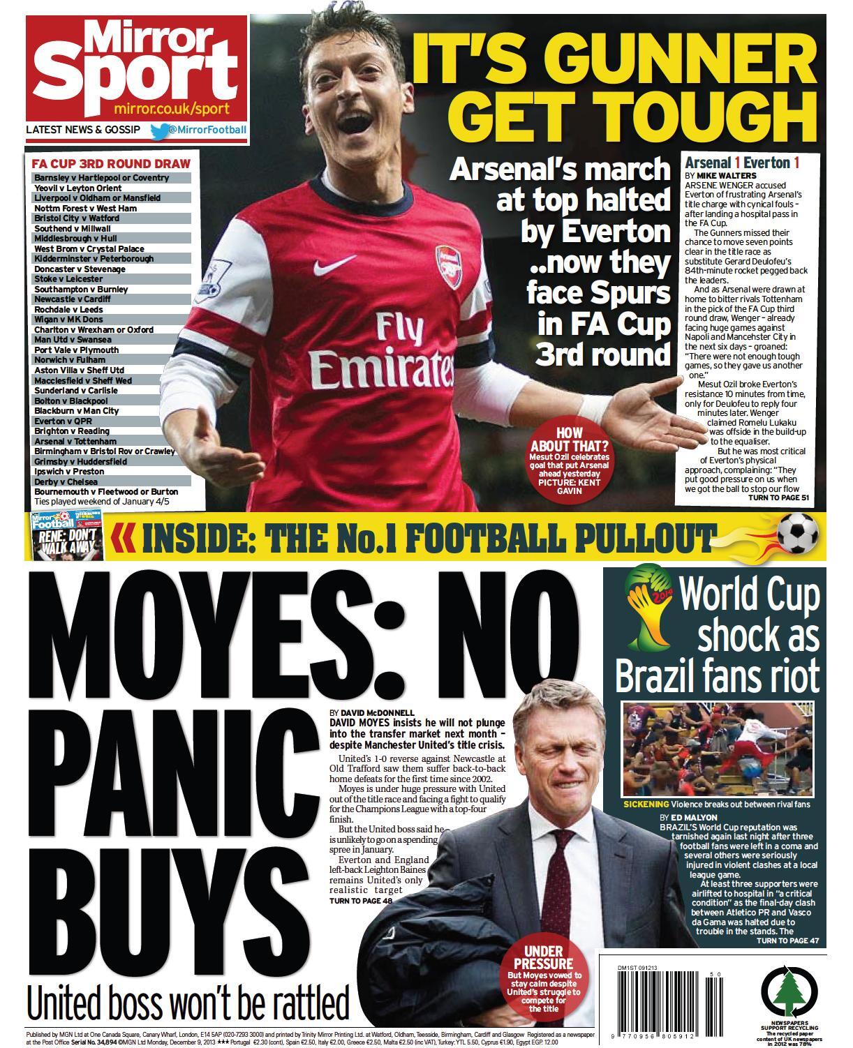 Daily Mirror - "Moyes: no panic buys"