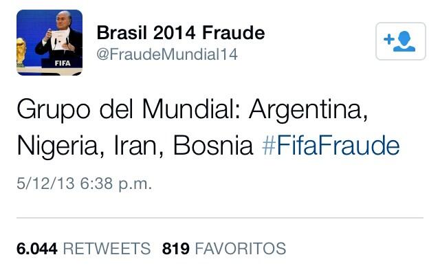 Tweet escrito durante o dia de ontem. A mesma conta avançou que seria a Itália a passar para o Pote 2. Veja a conta https://twitter.com/FraudeMundial14