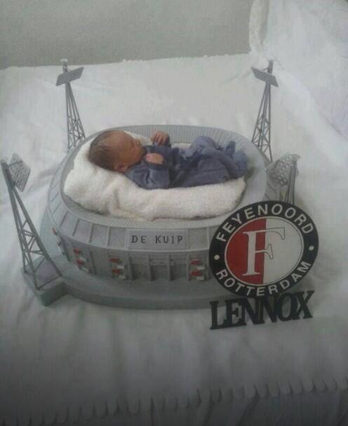 A Feyenoord fan has build a mini De Kuip stadium for his baby to lie in