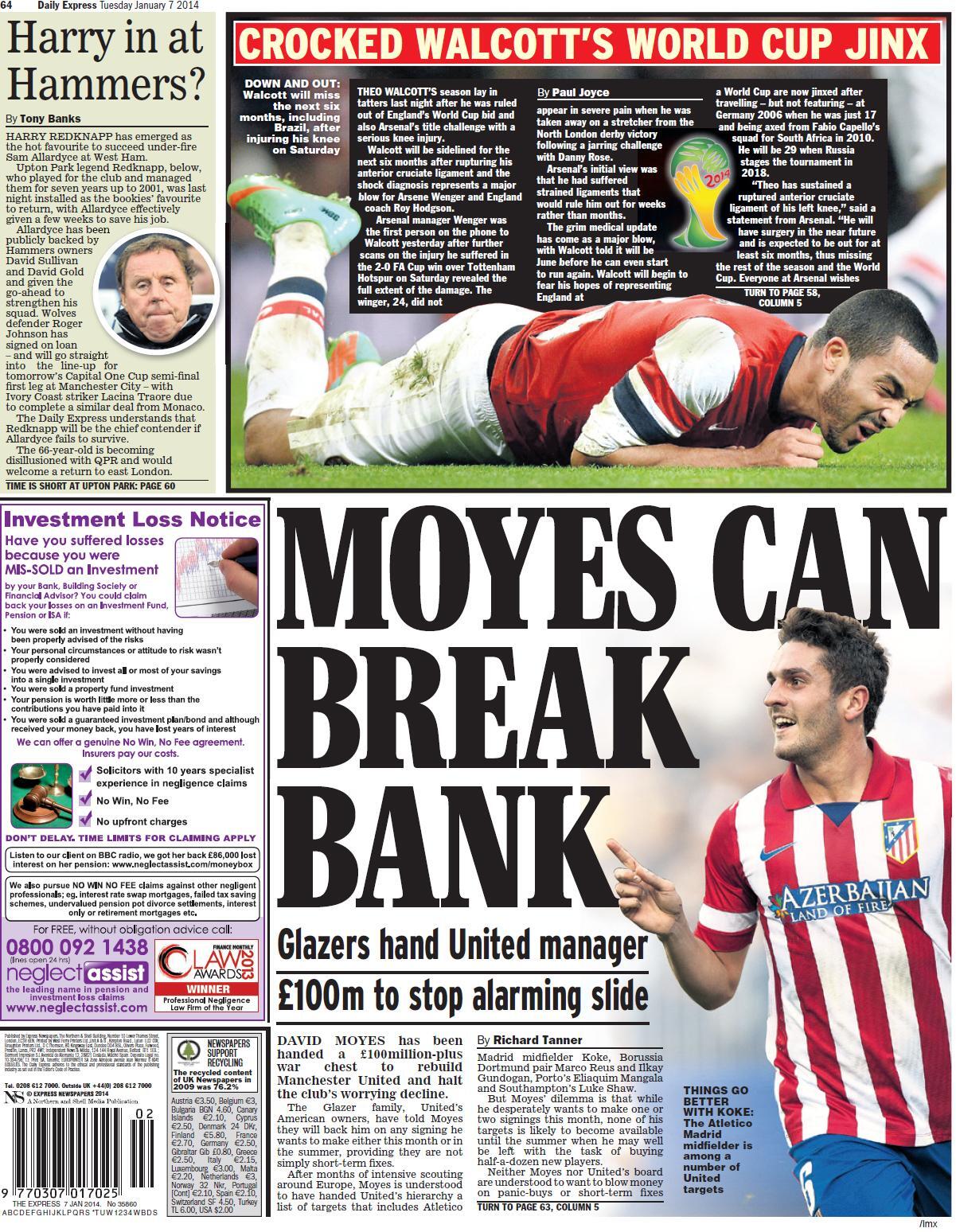 Daily Express - “Moyes can break bank”