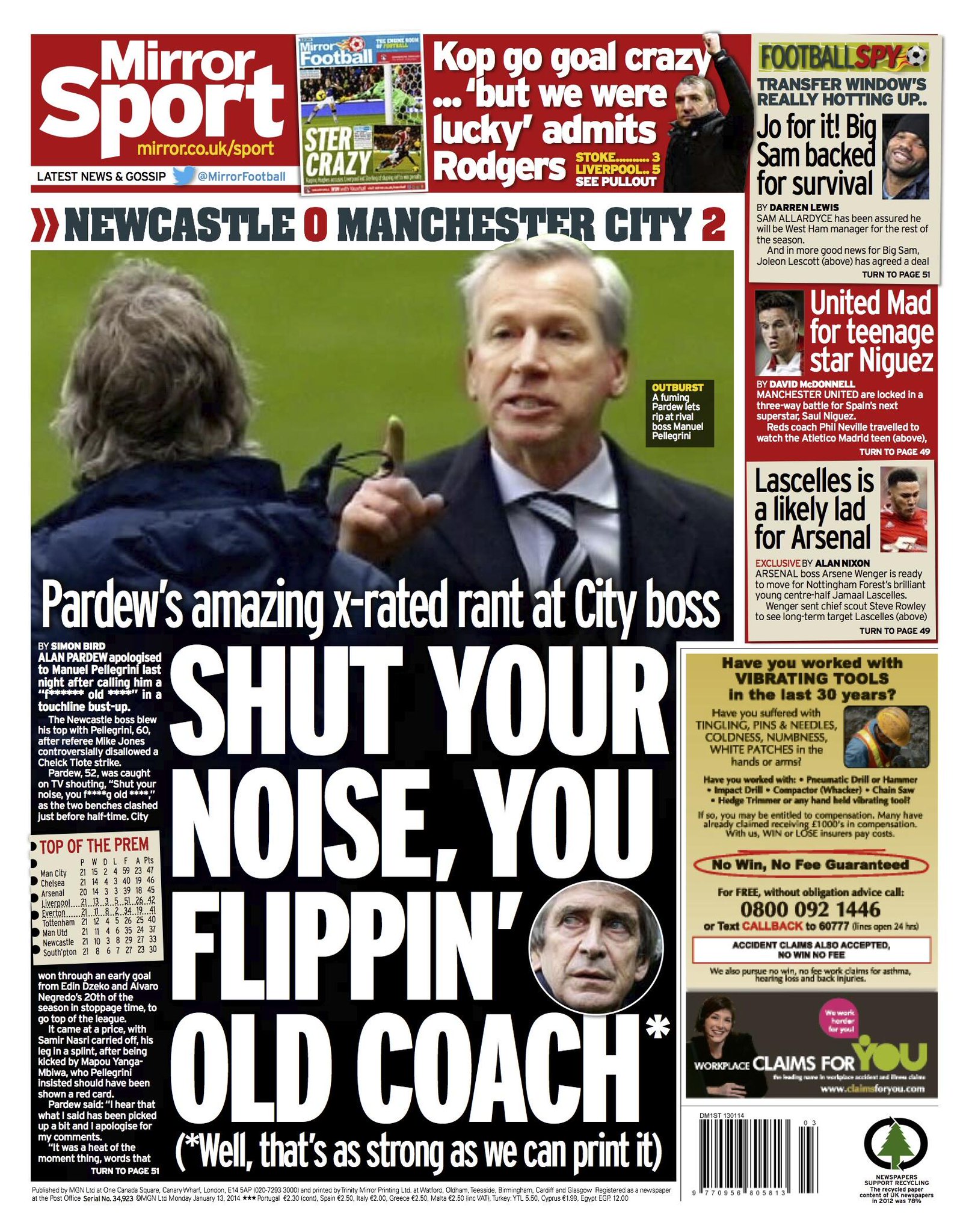 Daily Mirror – “Shut your noise, you flippin’ old coach”