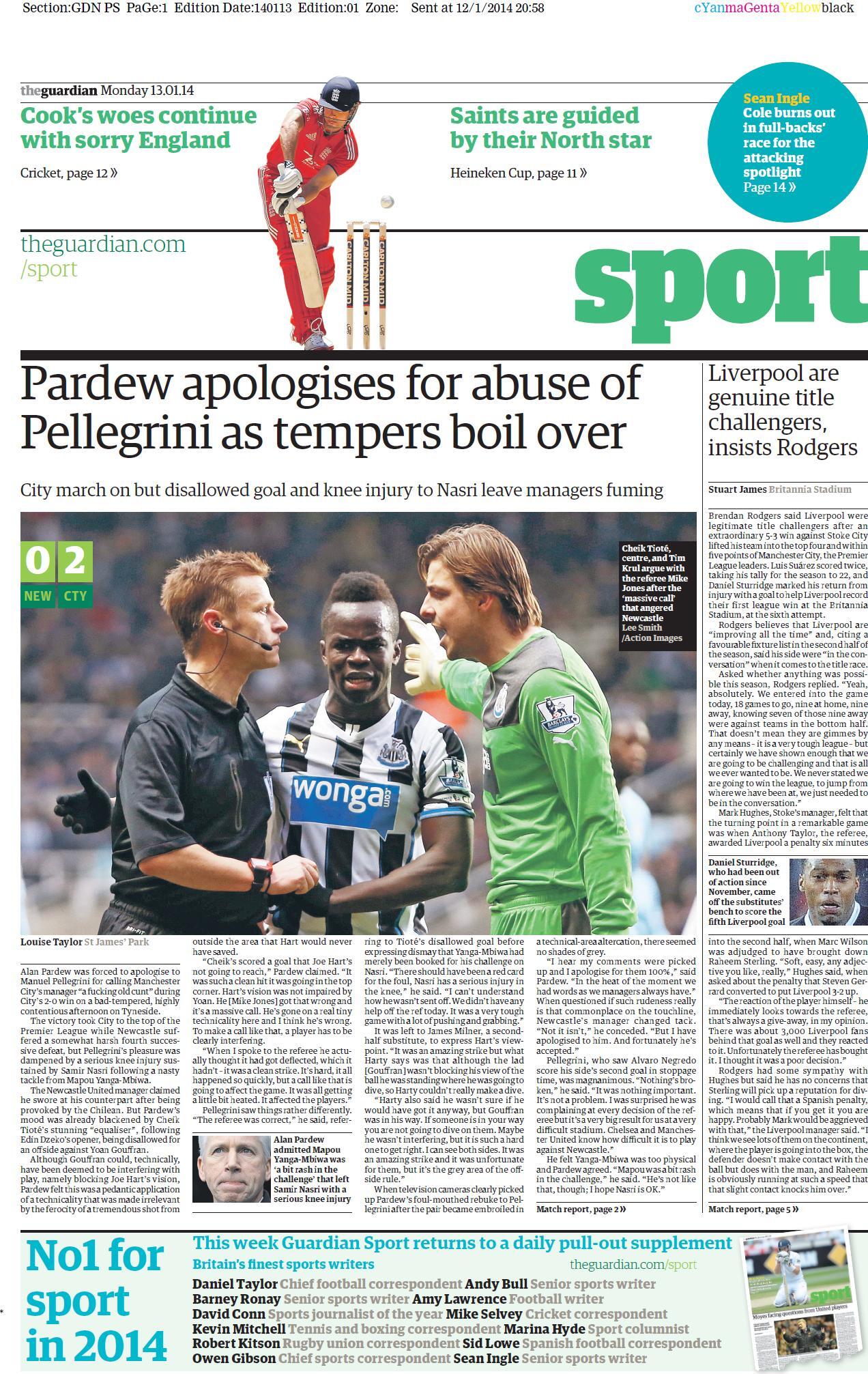 Guardian Sport - “Pardew apologises for abuse of Pellegrini as tempers boil over”
