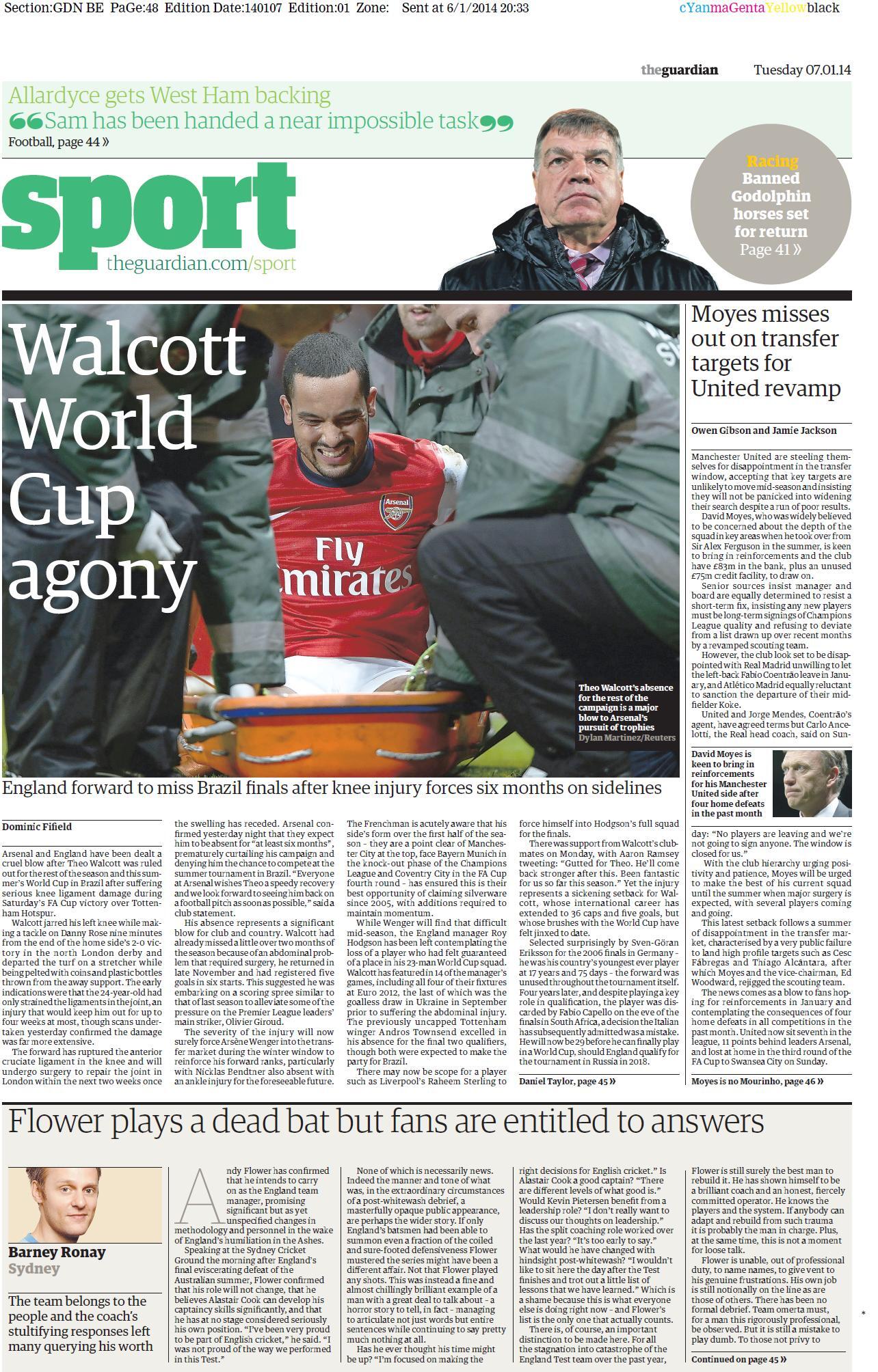 Guardian Sport – “Walcott World Cup agony”