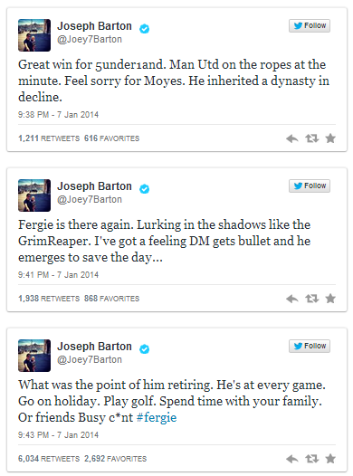 Imagem: Joey Barton após nova derrota do United