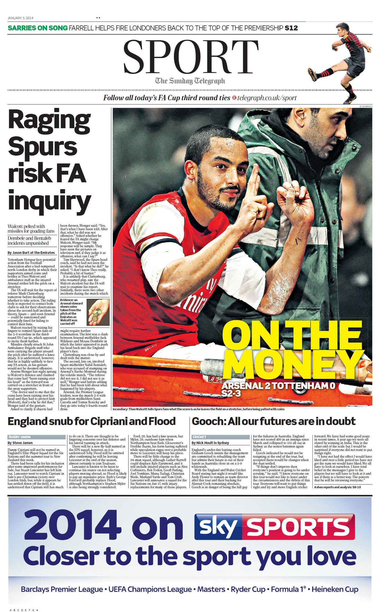 Telegraph Sport - On the money + Raging Spurs risk FA inquiry