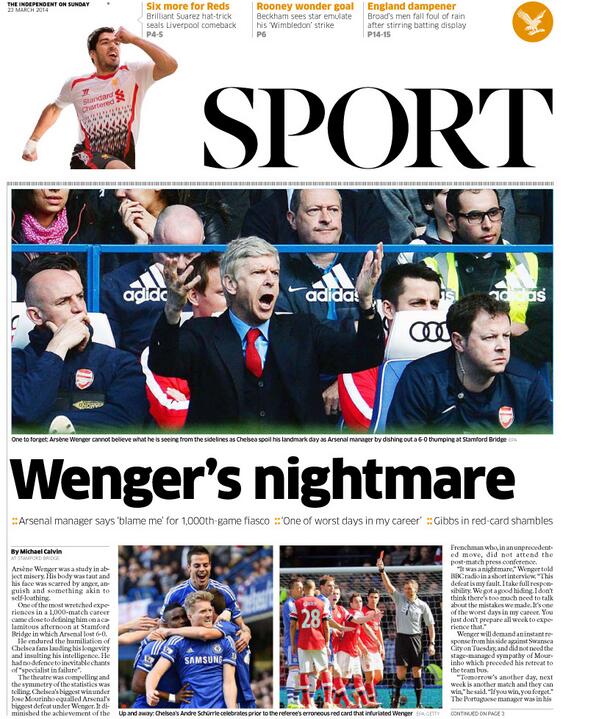 Independent on Sunday Sport - "Wenger's nightmare"