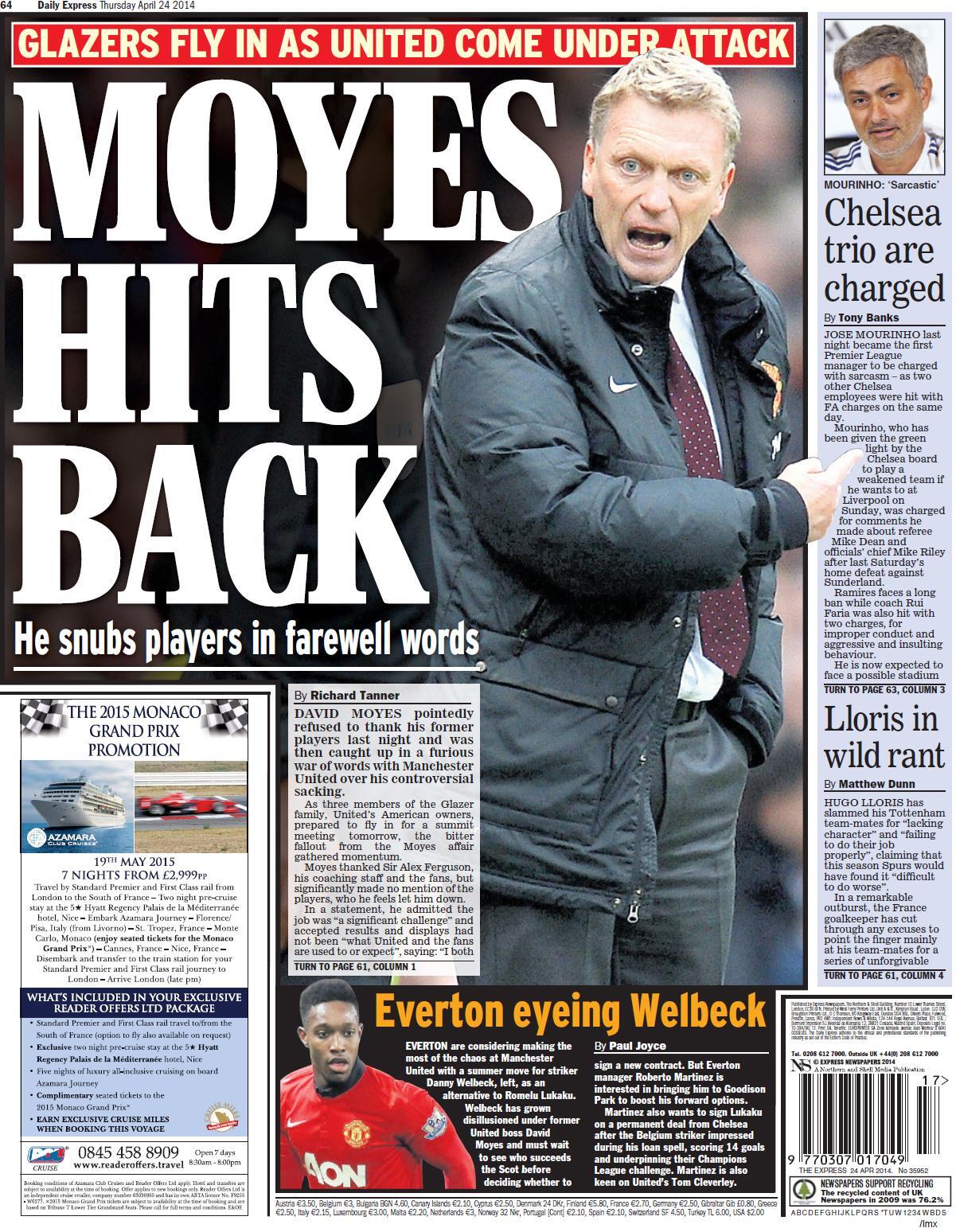 Daily Express - "Moyes hits back"